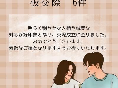 今週は一組の方が仮交際に進まれました☺️ 女性会員様が仮交際に進みたいと思われた理由は、「お相手の男性は、常識やマナーがありました」とのこと。安心感や信頼感を感じられるお相手なのでしょうね✨️ ご縁に結...